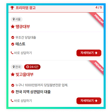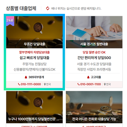 단순변심 또는 대부업증 휴/폐업 등으로 인한 환불은 불가합니다.